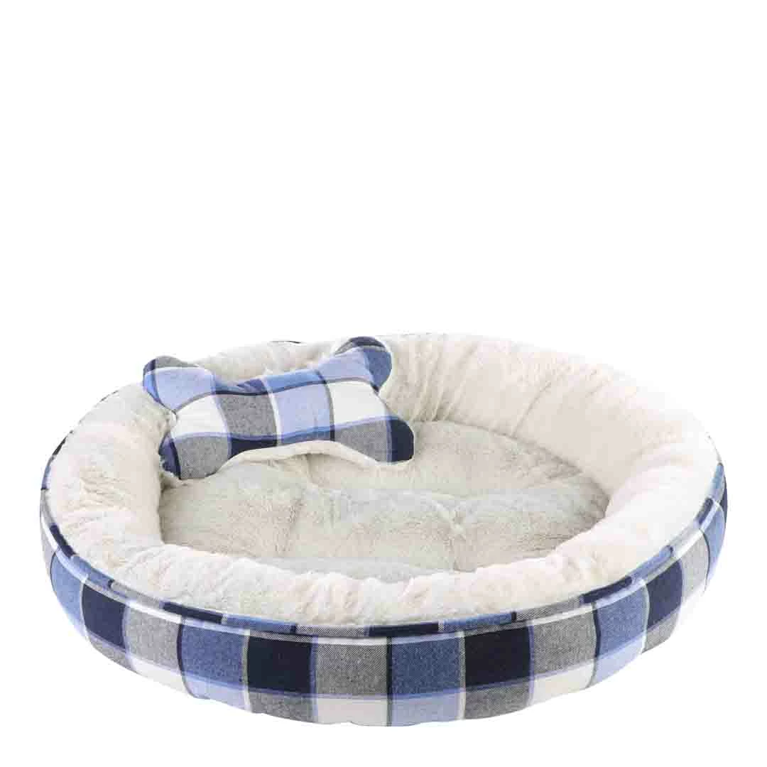 Dream Paws Blue Check Pet Bundle Bed with Blanket & Toy
