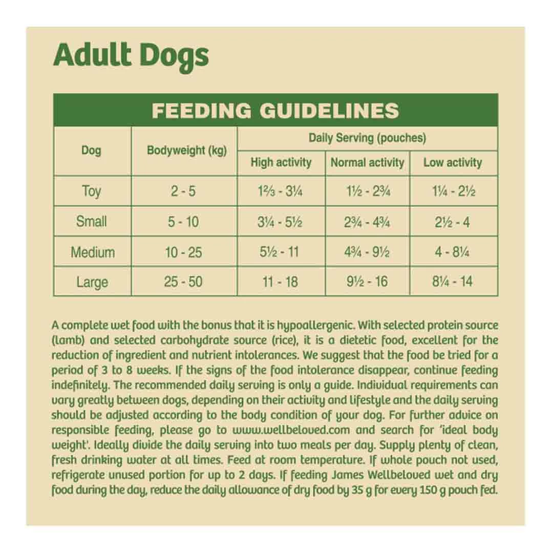 James Wellbeloved Adult Lamb in Gravy Pouches are made using naturally hypoallergenic ingredients. James Wellbelovedput a lot of love into creating recipes dogs will love. Using only simple ingredients and inspired by nature, their dog food has all the goodness your dog needs – and nothing they don’t. To minimise the risk of adverse food reactions, it’s naturally hypoallergenic. Best of all, you can be sure your canine friend is enjoying a balanced diet. One that not only tastes good but does them a world of good too.