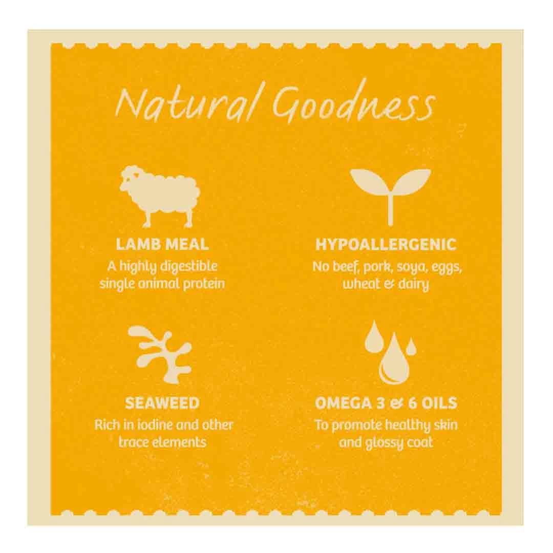 - Hypoallergenic – No beef, pork, soya, eggs, wheat or dairy.