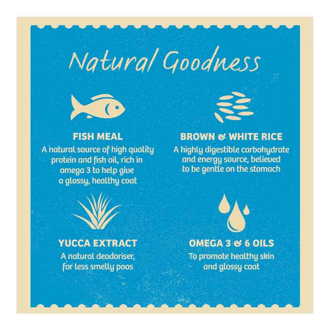 - Made with 100% natural fish and brown as well as white rice for a balanced meal.