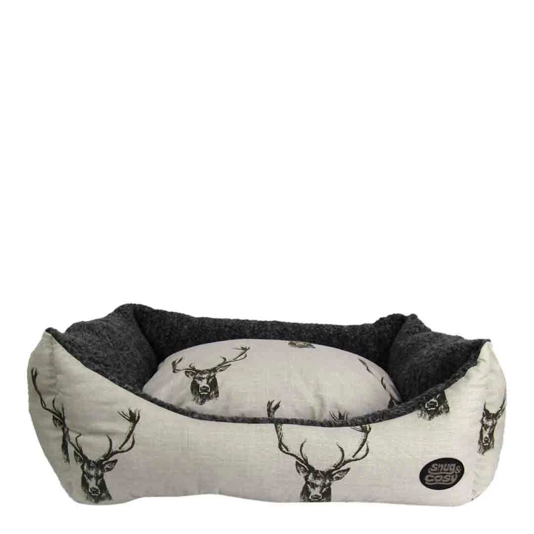 The Sung & Cosy Stag Print Large Dog Bed is a great choice if you are looking for a long-lasting, easy-to-maintain medium dog bed. Crafted using high-quality material, this rectangular-shaped dog bed has a unique print and a waterproof base which adds to the beauty of this dog bed and makes it a perfect addition to your indoor or outdoor home decor. The bed features virgin fibres and a soft inner liner that adds softness to the bed. Suitable for dogs of all breeds, this washable dog bed has a removable and reversible inner pad, which makes it easy to use in all seasons.